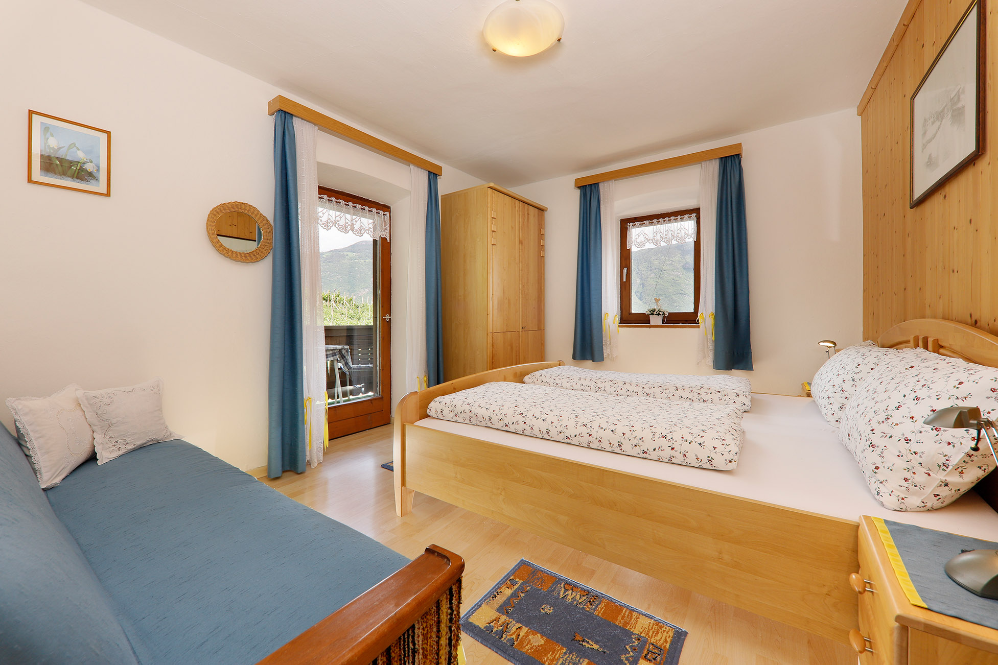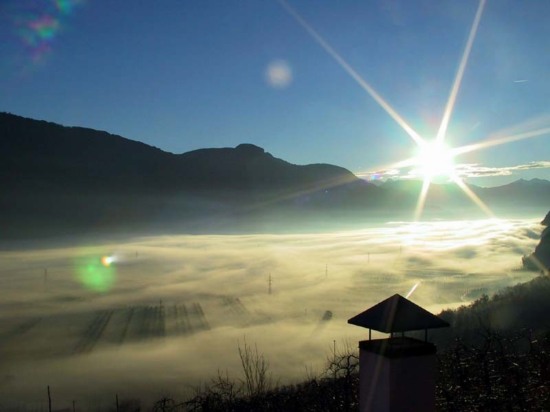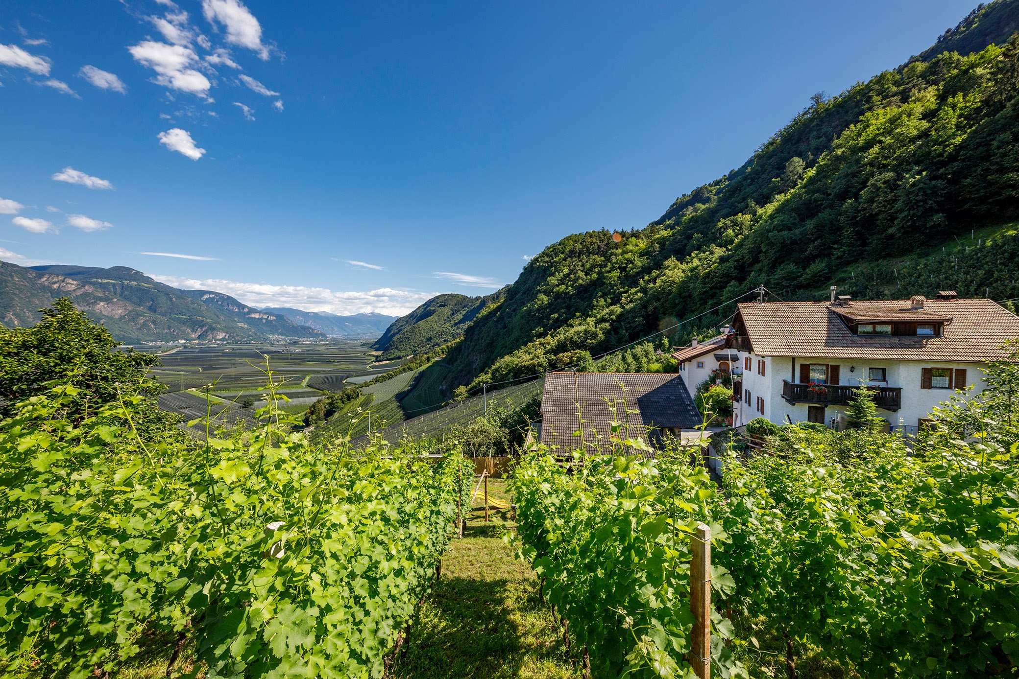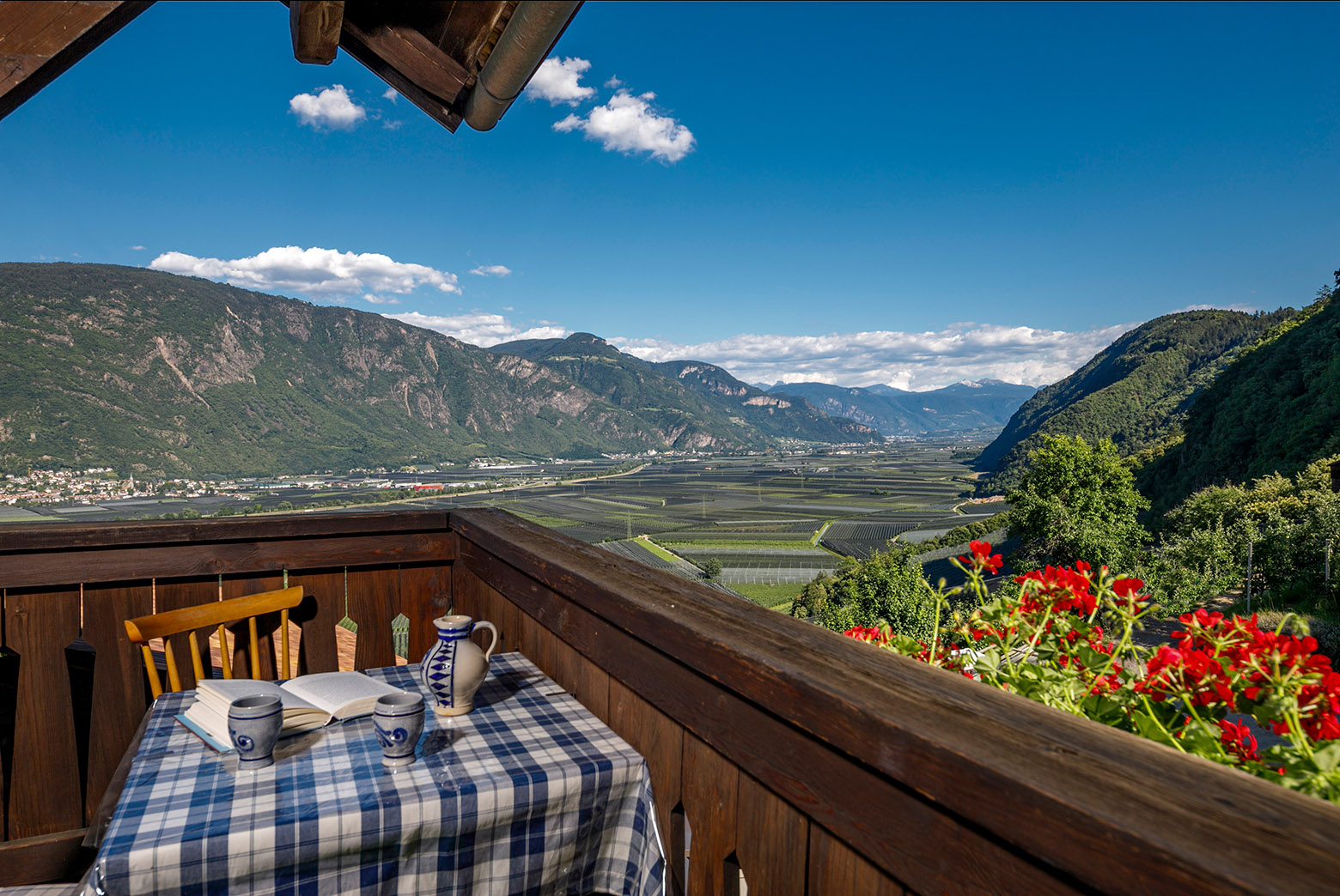 Highlight: Ein Balkon mit spektakulärem Direktblick ins Etschtal. Genießen Sie das goldene Licht der Sonne und den Panoramablick über die Obstgärten bis weit in den Süden.