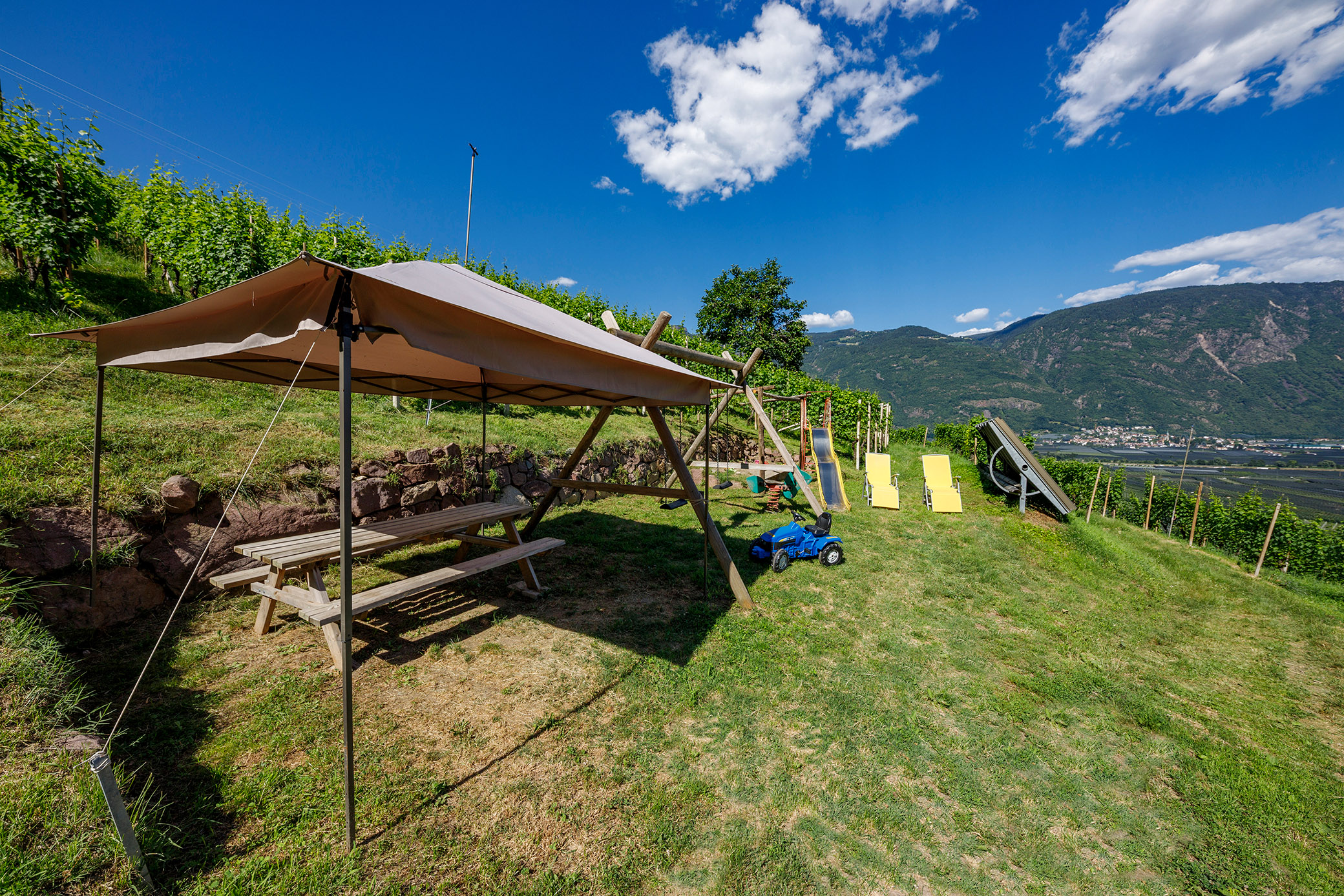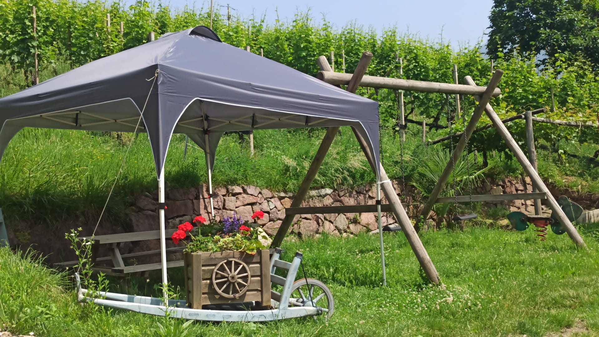Urlaub heißt bei uns, die Seele baumeln zu lassen. Unser Hof liegt auf einer Sonnigen Meereshöhe von 450m im Meraner Land, eingebettet in das malerische Grün unserer eigenen Obstbäume und Weinreben.